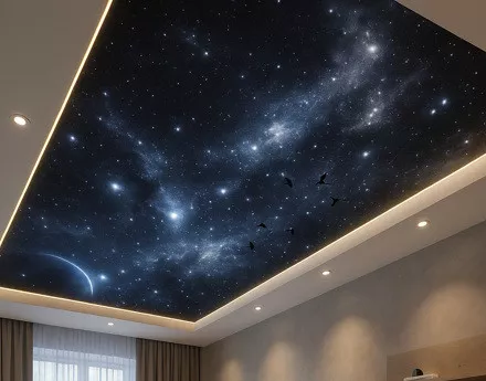 С базовой потолочной конструкцией в спальне или детской мы уложимся за пару часов. Создание сложного оригинального дизайна потребует больше времени.