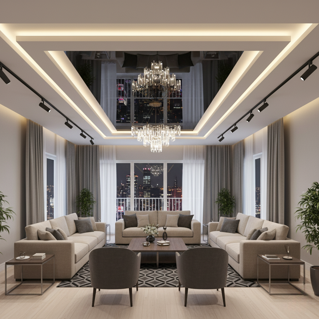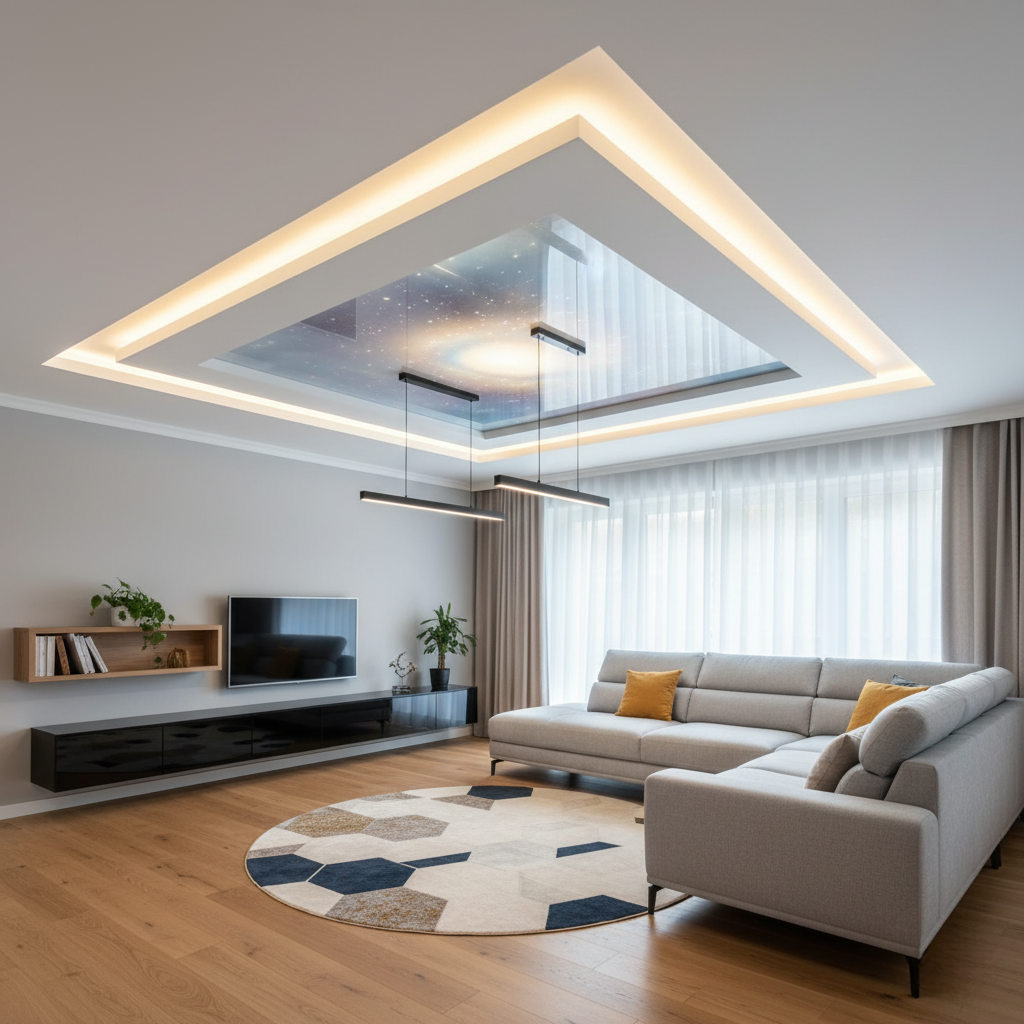 Двухуровневые натяжные потолки с подсветкой: главные особенности