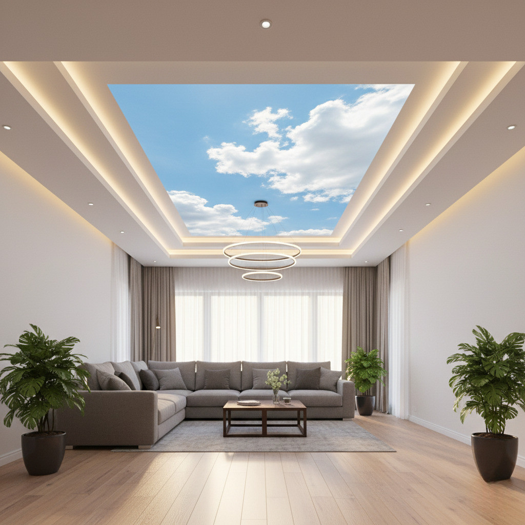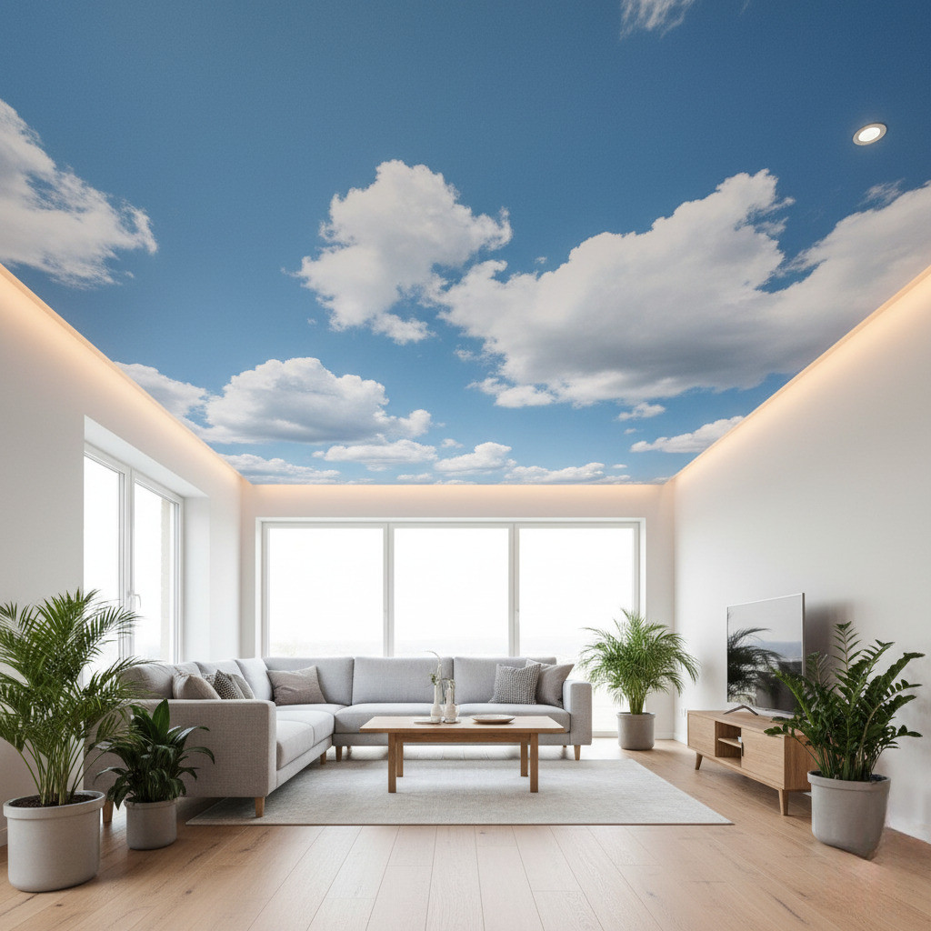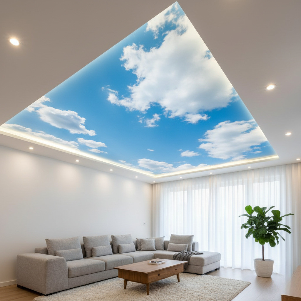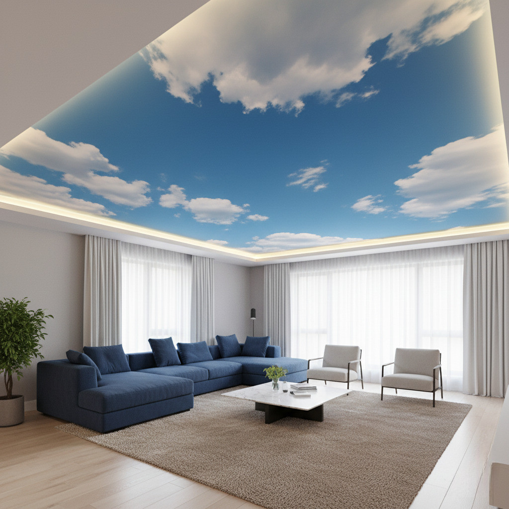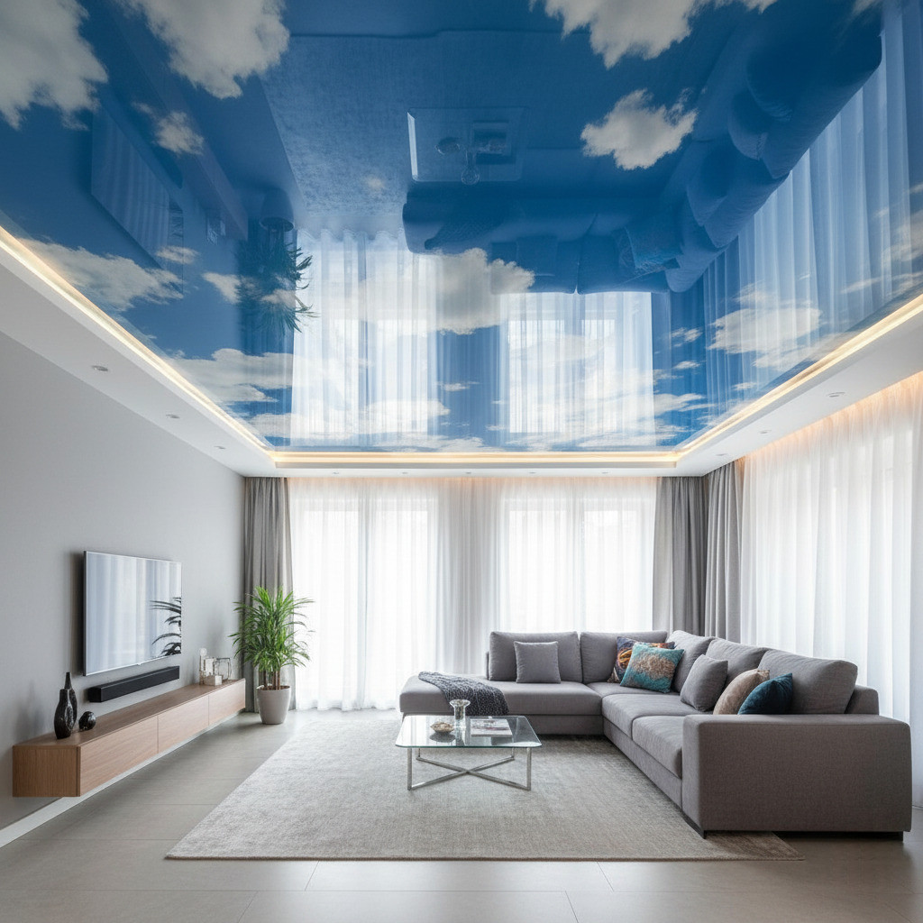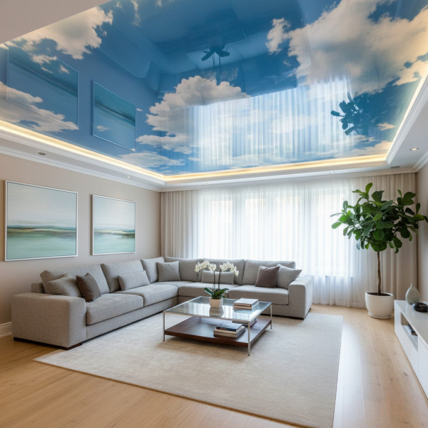 Если вы ищите стильную для потолка, на которую каждый гость в вашем доме обратить особое внимание, вам могут приглянуться натяжные потолки с облаками «небо» в Иваново. Это могут быть различные виды неба – солнечное, ночное и т.д. Кроме того, такие натяжные потолки можно оснастить подсветкой. Это придаст общему дизайну еще большей яркости. Цены на натяжные потолки в СПб с установкой, выполненные в таком дизайне, окажутся лояльными, если вы обратитесь в нашу компанию.