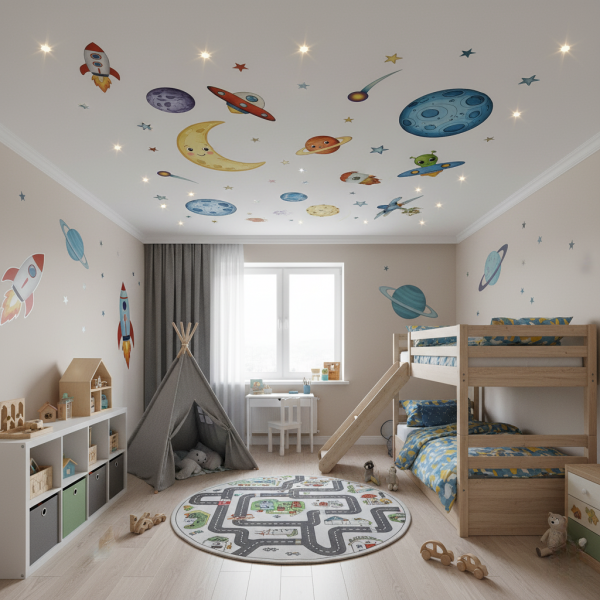 Правильно подобранные модели натяжных потолков в детскую Иваново смогут обеспечить комфортную и здоровую обстановку в помещении. Все дело в том, что такие полотна позволяют помещению дышать, обеспечивая хорошо циркуляцию воздуха. Кроме того, они не пропускают влагу, а это означает, что в помещении не будет появляться плесень или грибок. Это особенно важно, если в комнате живет ребенок с аллергией или другими заболеваниями дыхательной системы.