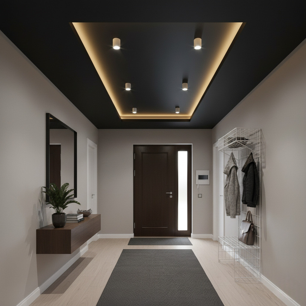 Заказать натяжной потолок в прихожую стоит по нескольким причинам. Одна из основных – это высокая износостойкость материала, которая является особенно актуальной для данного типа помещений. Такой потолок не боится воздействия влаги и перепадов температур. Полотна имеют антистатический эффект, благодаря которому пыль не скапливается на их поверхности – в результате уборка требуется крайне редко. Кроме того, натяжные потолки являются прочными – они способны выдерживать нагрузку до 100 л/м2, защищая от затапливания.