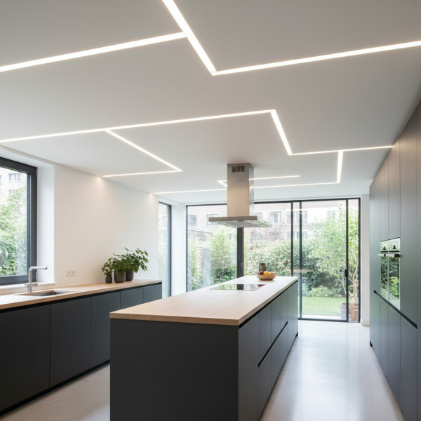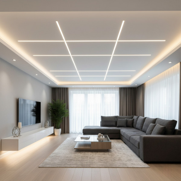 Монтаж световых линий проводится довольно просто. Кроме того, для этого не требуется предварительной подготовки поверхности, так как все неровности скрывают сами натяжные потолки. Это большое преимущество, так как вам не потребуется выносить мебель или прочие предметы из комнаты перед проведением установки.