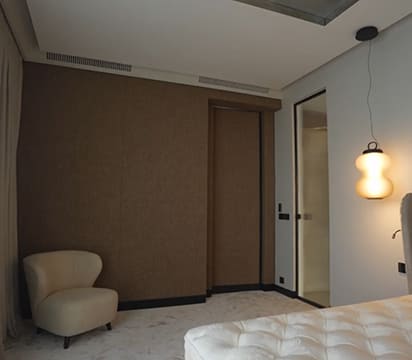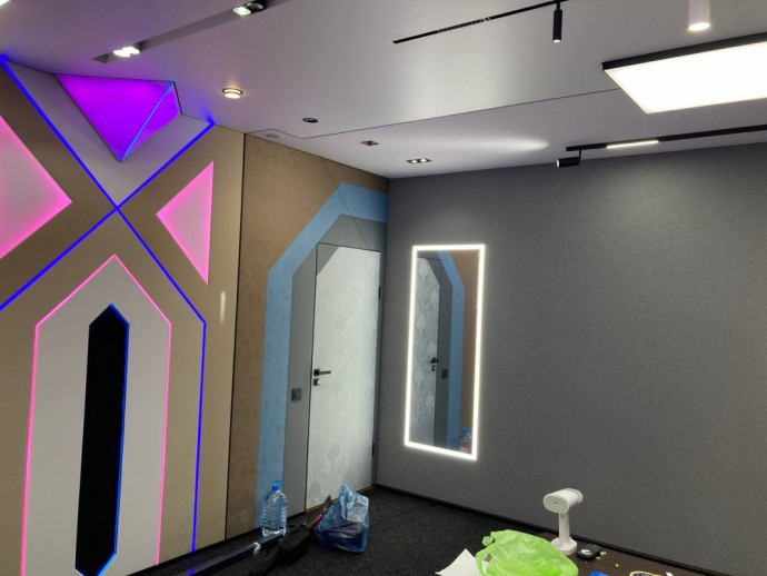 Это финишная отделка стен и потолков из архитектурного текстиля. Вам не придется беспокоиться о ремонте, так как срок службы материала более 30 лет. Инновационное негорючее полотно, имеющее антивандальное покрытие, износостойкость и шумоподавление.